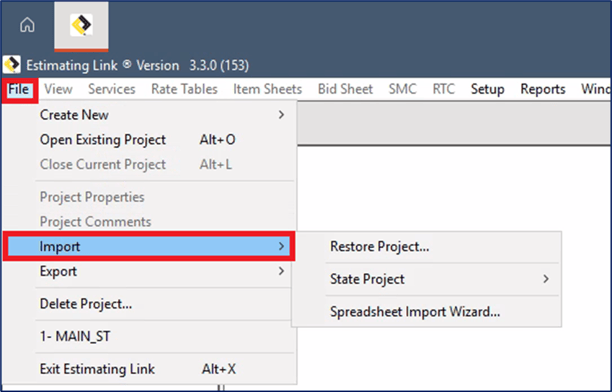 Step-by Step instructions to import spreadsheets, .cli files, or EBS files from your computer into Estimating Link on your web app.