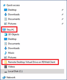 - Using the left navigation, click on This PC, then Remote Desktop Virtual Drive RD Web Client.