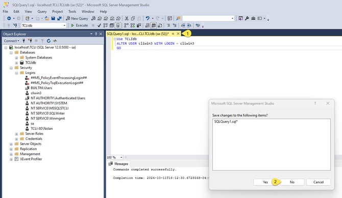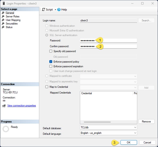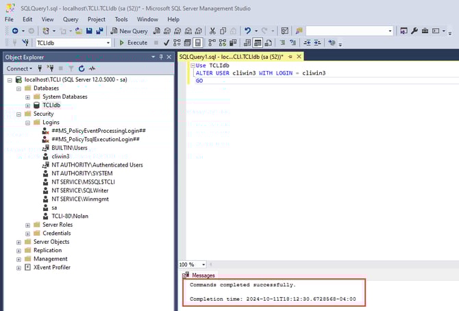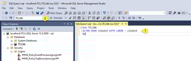 Use TCLIdbALTER USER cliwin3 WITH LOGIN = cliwin3GO - Click Execute